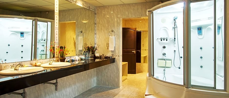 This room features a seating area, a desk, a flat-screen TV with satellite channels, tea and coffee-making facilities and a mini-bar. An private bathroom with a bathrobe, slippers and a hairdryer are also included.